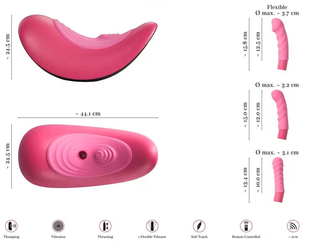 Chaque embout propose une sensation distincte (poussée, vibration ou tapotement), que tu peux combiner au vibro-pad pour des orgasmes sur mesure.