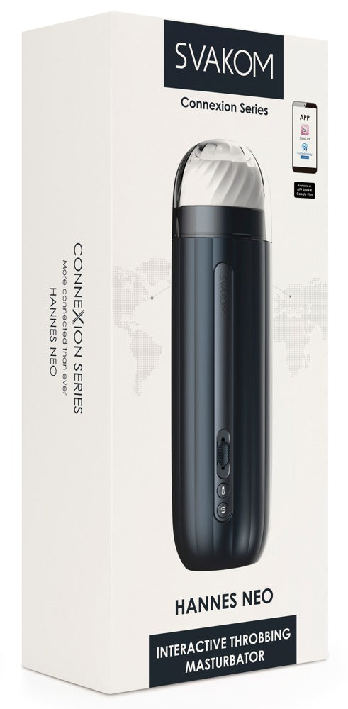 SVAKOM Hannes Neo : pulsations profondes (5 niveaux) + chauffe intégrée pour sensations réalistes, pilotage bouton/curseur ou appli FeelConnect-3 (contrôle à distance, vidéos 2D, webcam).